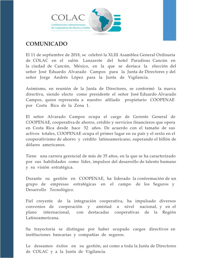 Reciban un cordial saludo en nombre de todos los que conformamos COLAC y
